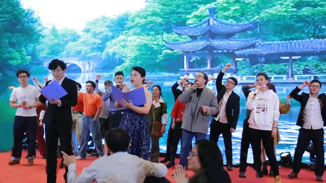在被现场晚会热烈氛围,金石东方和海南亚洲制药的几位领导也临时登台助兴,为大家带来了几首欢快应景的歌曲。